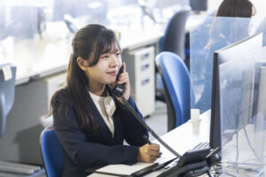 まず、お客様対応です。来社されたお客様を応接室にご案内しました。次に、電話対応です。担当者宛て以外の電話やフリーダイヤルからの電話に出ました。これらの電話を適切な担当者に繋ぐのが仕事です。